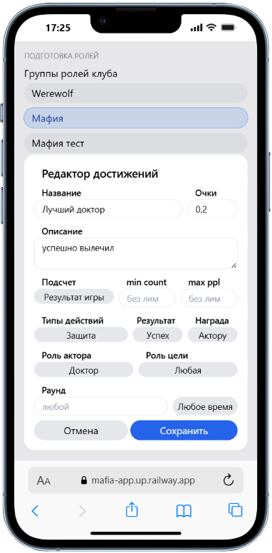 Универсальный конфигуратор позволяет подстроиться под любой клуб МАФИИ и любые правила.