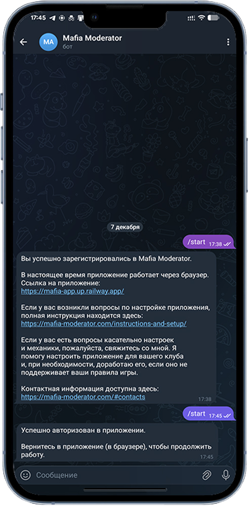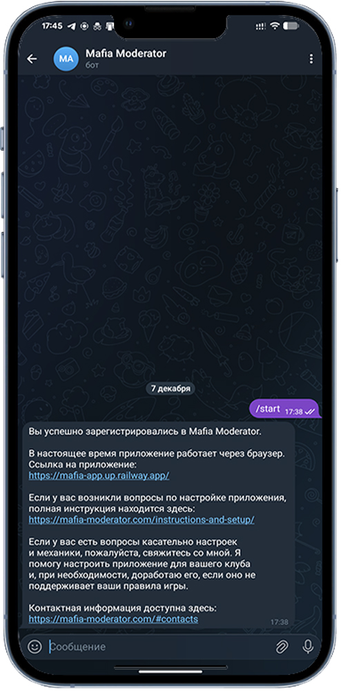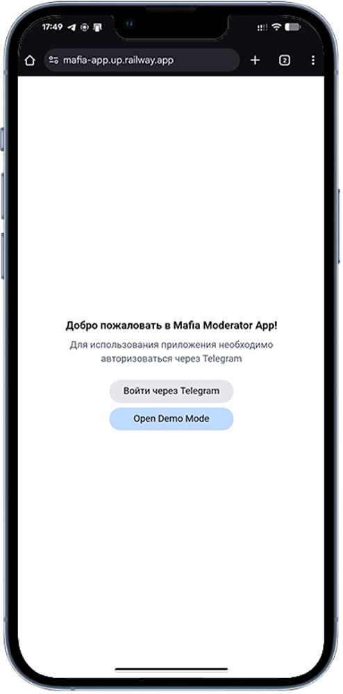 Перейдите обратно в браузер и по той же ссылке (https://mafia-app.up.railway.app/) Вы попадете на начальный экран приложения, после чего Вы можете начать настраивать его под свой Клуб.