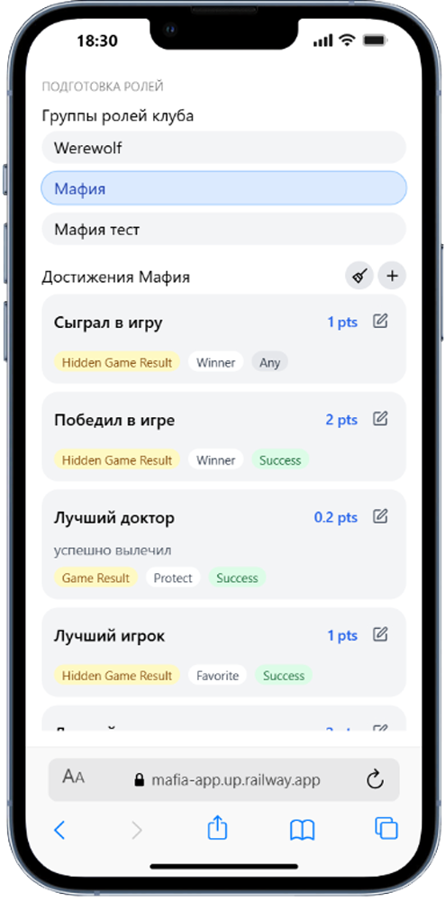 Если у Вас возникнут любые вопросы, напишите мне, я помогу настроить приложение под Ваш клуб, добавить все роли и систему вознаграждений/баллов игроков.