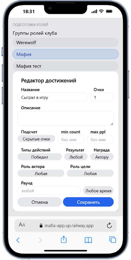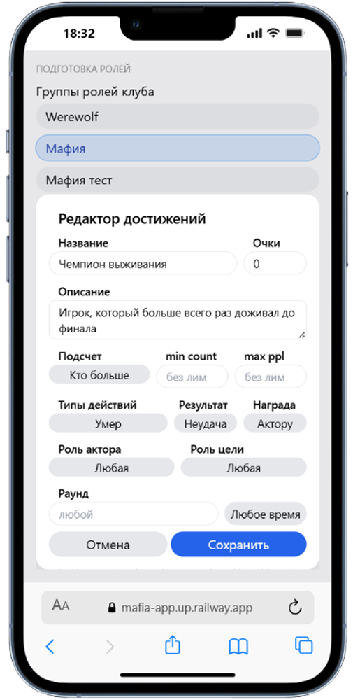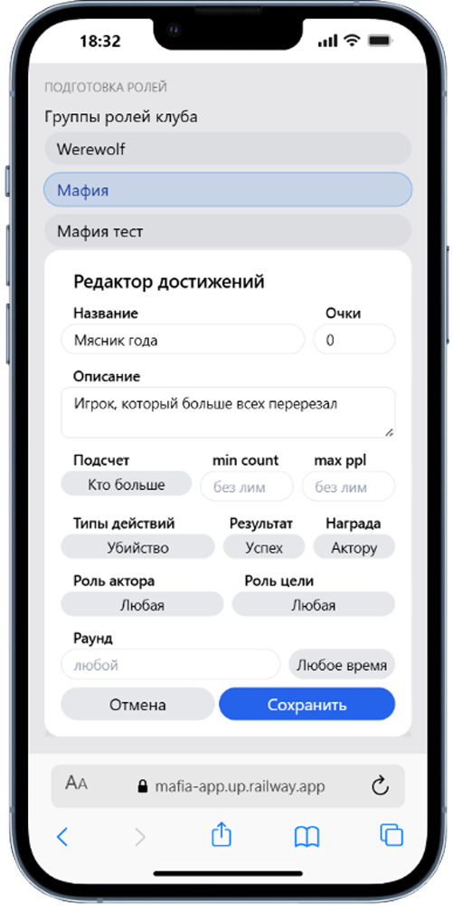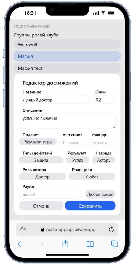 Добавлю по поводу Демо режима приложения. Вы можете без регистрации ознакомится с основным функционалом приложения с предустановленными ролями, но в нем заблокирован редактор ролей и игры не будут сохраняться.