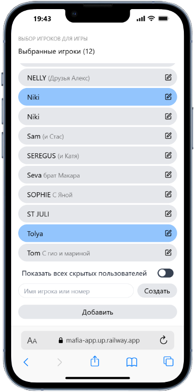 Для этого над списком игроков нажмите кнопку редакции📝.